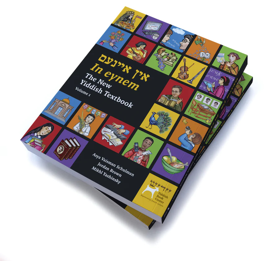 Written by Asya Vaisman Schulman and Jordan Brown with Mikhl Yashinsky, In eynem is the first fully-illustrated, multimedia Yiddish textbook that uses the communicative approach to language learning. With this book, students use language as a practical tool for conversing with their classmates about their daily lives and as a vehicle through which they creatively delve into texts for cultural and artistic insights.